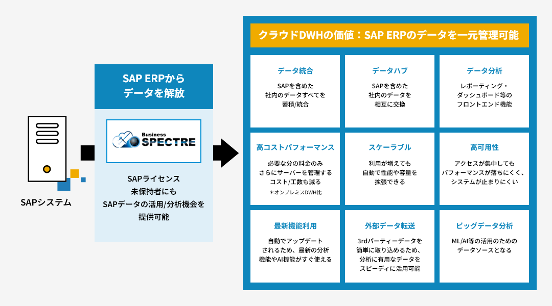 • BusinessSPECTRE XCは、SAPのデータをクラウドDWHに直接転送することが可能
